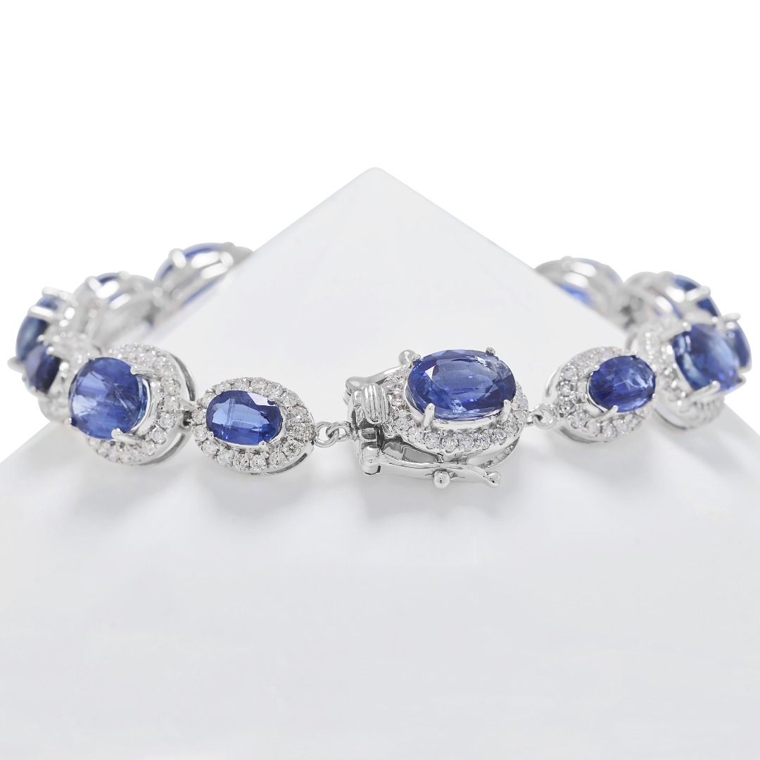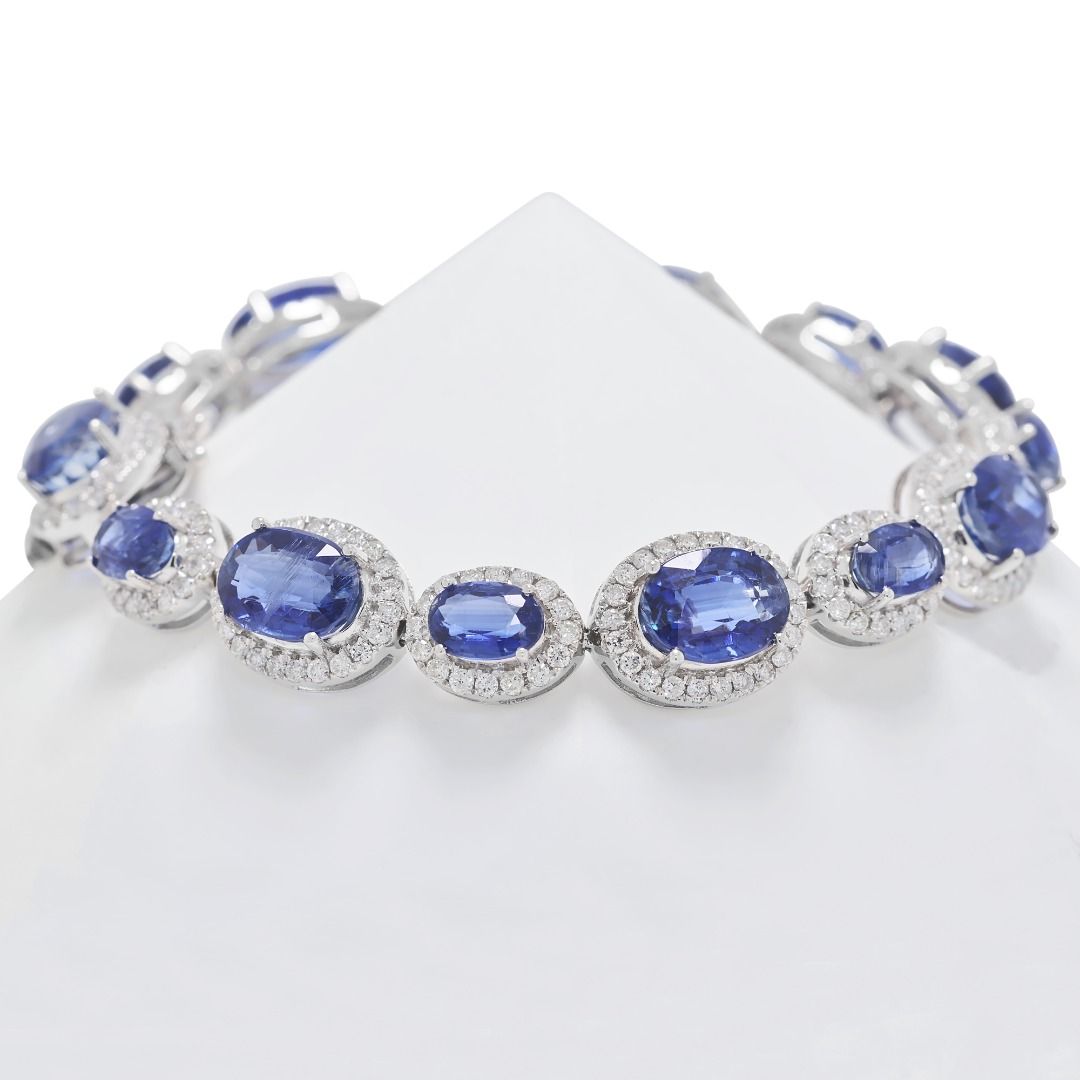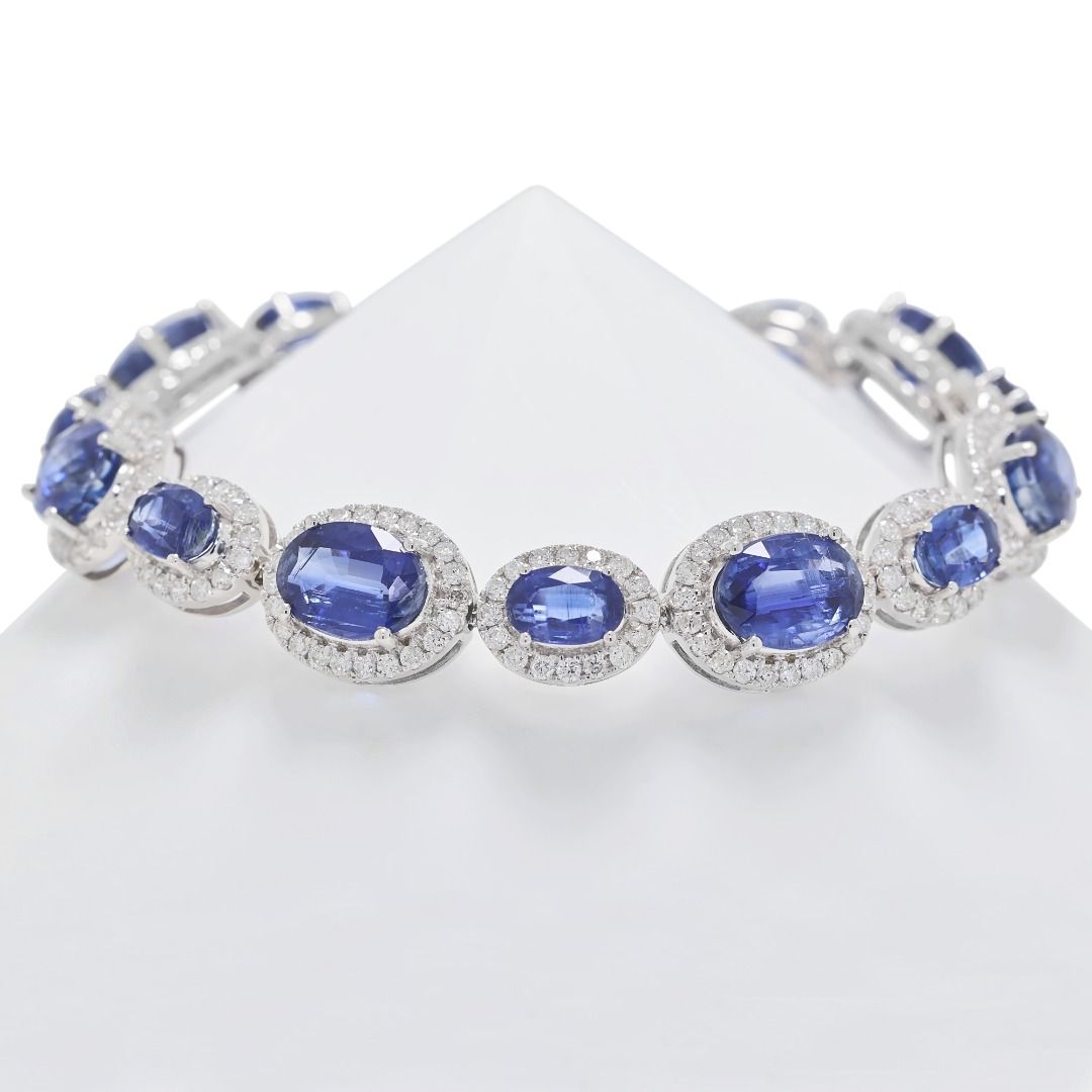 צמיד יוקרתי מזהב לבן 18 קראט, משובץ ספיר ויהלומים במשקל 16.39 קראט