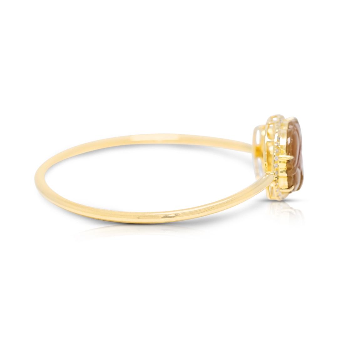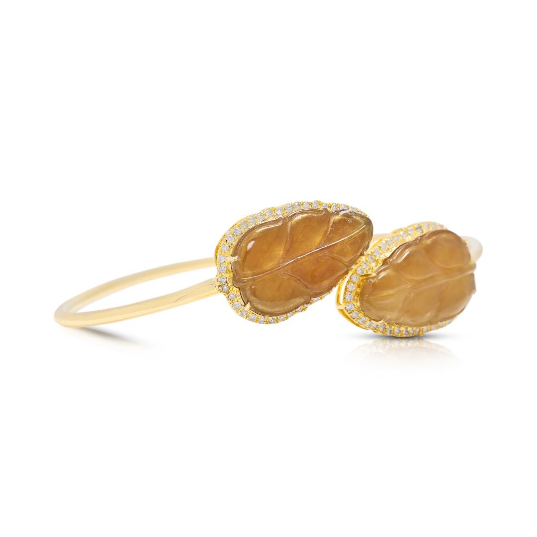 צמיד קשיח יוקרתי עם ג'ייד צהוב-דבש ו-0.42 קראט יהלומים בזהב צהוב 18 קראט