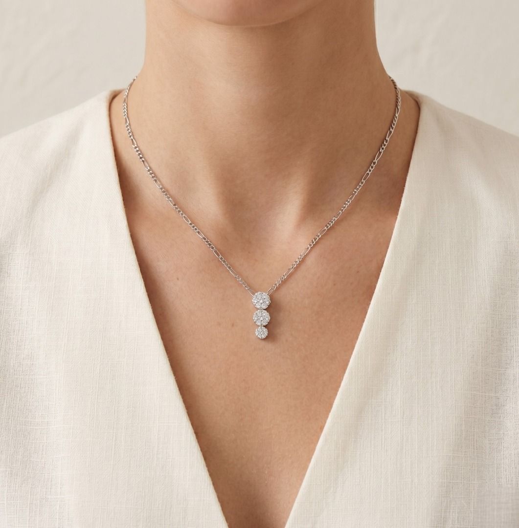 שרשרת אשכול יהלומים עגולים מנצנצת במשקל 0.36 קראט בזהב לבן 18 קראט (חדש)