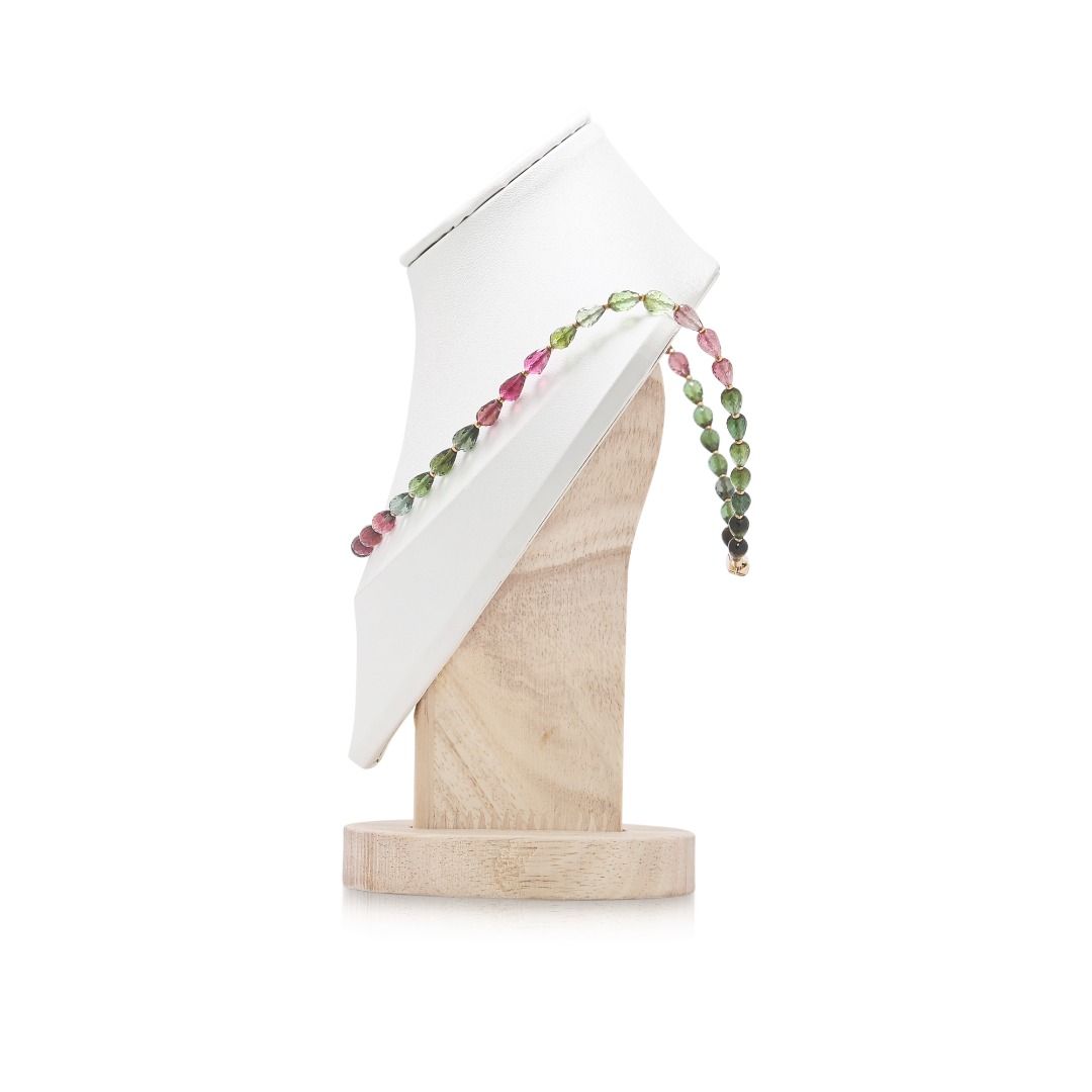 צעדו אל עולם של צבעים עזים עם שרשרת מרהיבה זו הכוללת 48 בריולטים של טורמלין המציגים קשת עוצרת נשימה של ירוקי יער וורודים של שקיעה. כל אבן חן מלוטשת בקפידה כדי ללכוד אור מכל זווית, ויוצרת ריקוד שובב אך מתוחכם של ברק על העור. העיצוב מאובטח בצורה חלקה על ידי אבזם זהב צהוב 18k יוקרתי, המעניק גימור יוקרתי ומבריק ליצירת מופת קליידוסקופית זו. קלת משקל וזורמת באופן יוצא דופן במשקל 3 גרם בלבד, שרשרת חדשה זו, שמעולם לא נלבשה, היא פריט ההצהרה האולטימטיבי לאישה המודרנית שאוהבת לחגוג את אינדיבידואליותה באמצעות הגוונים המשובחים ביותר של הטבע.