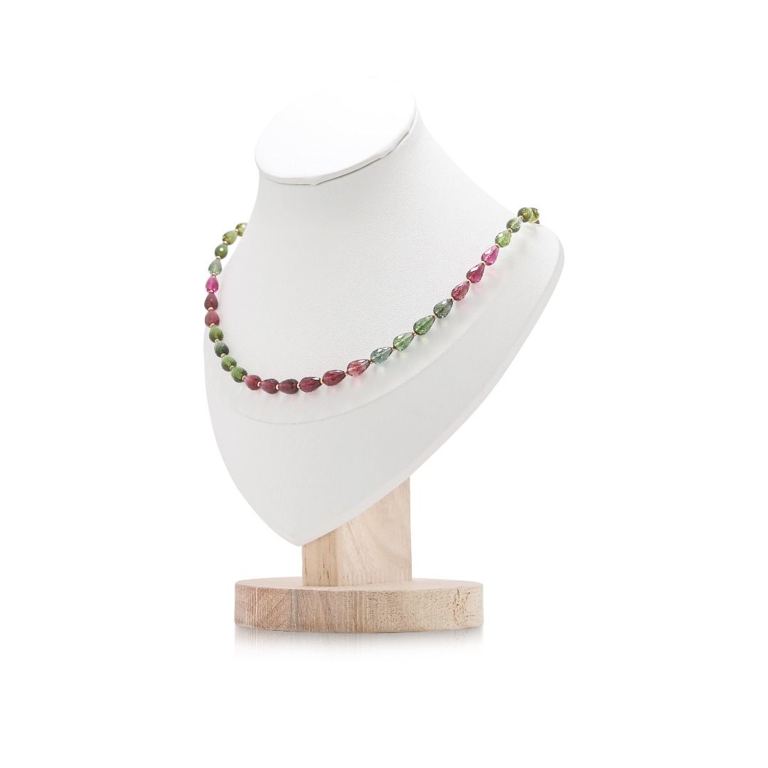 שרשרת בריולט טורמלין מעורב 80ct קורנת מזהב צהוב 18k (חדש-לא נלבש)