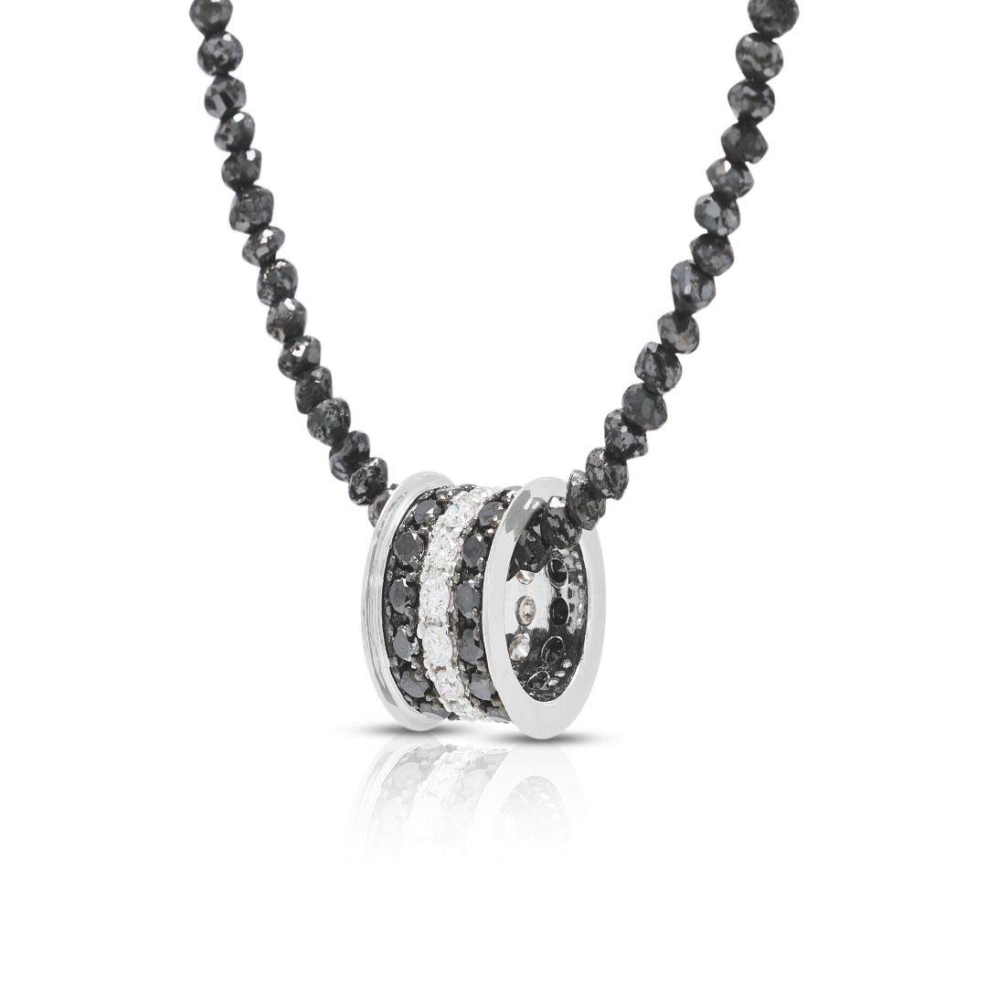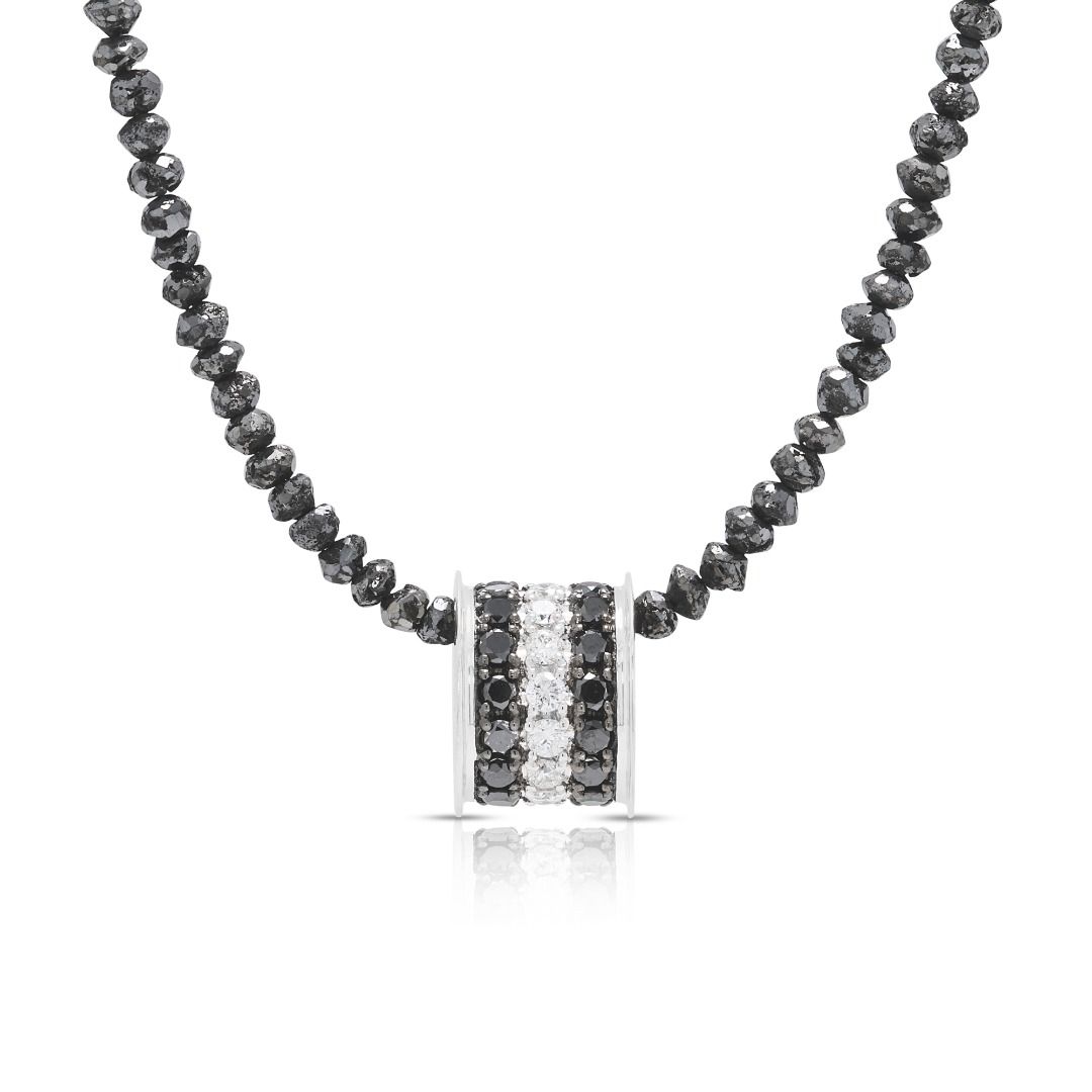 שרשרת יהלומים שחורים ולבנים מרשימה במשקל 150.7 קרט, בזהב לבן 18K