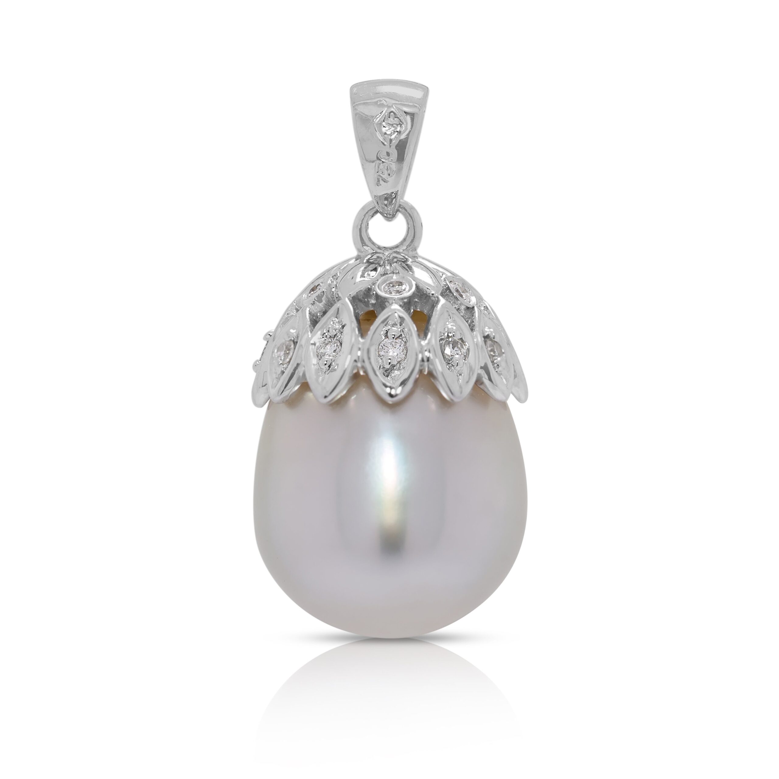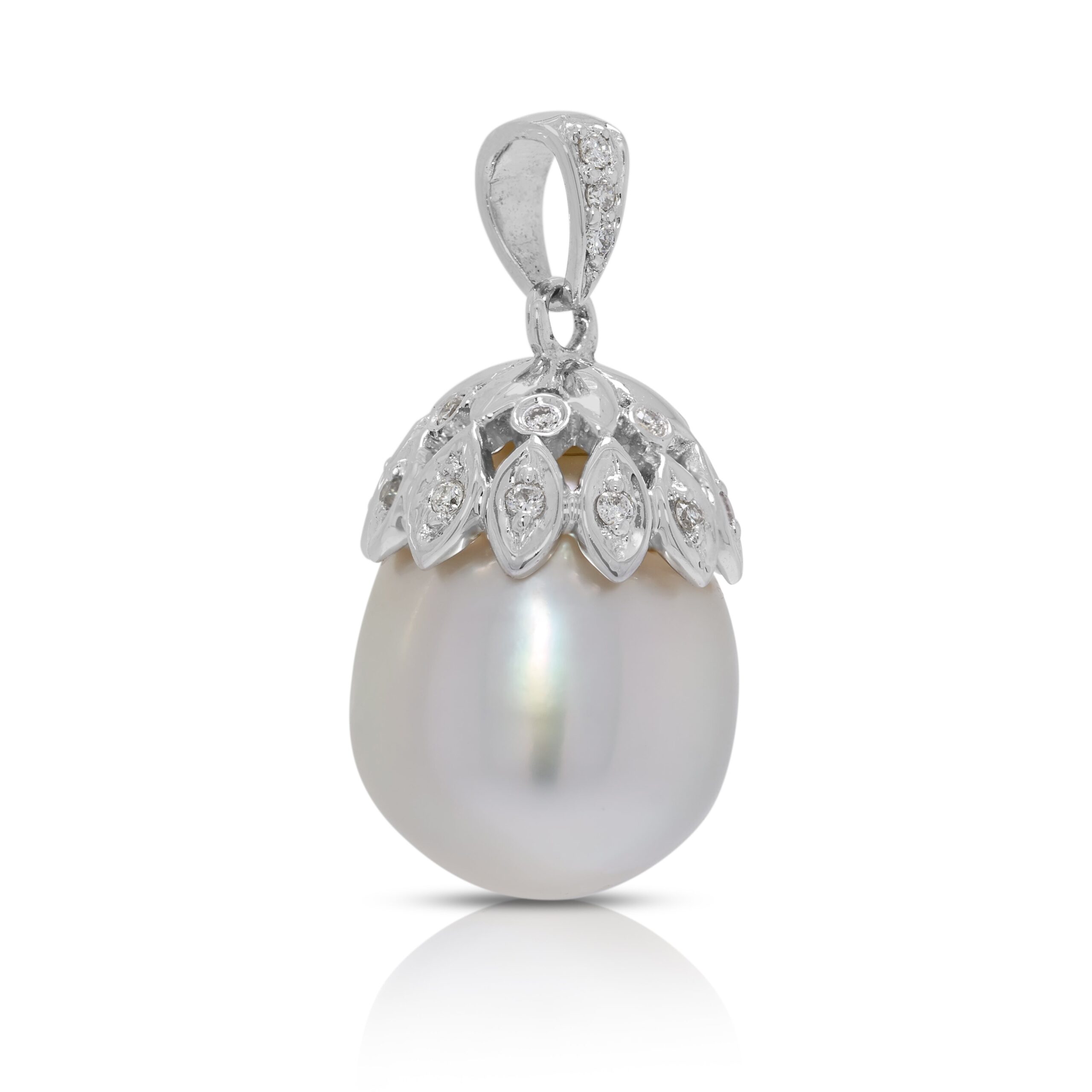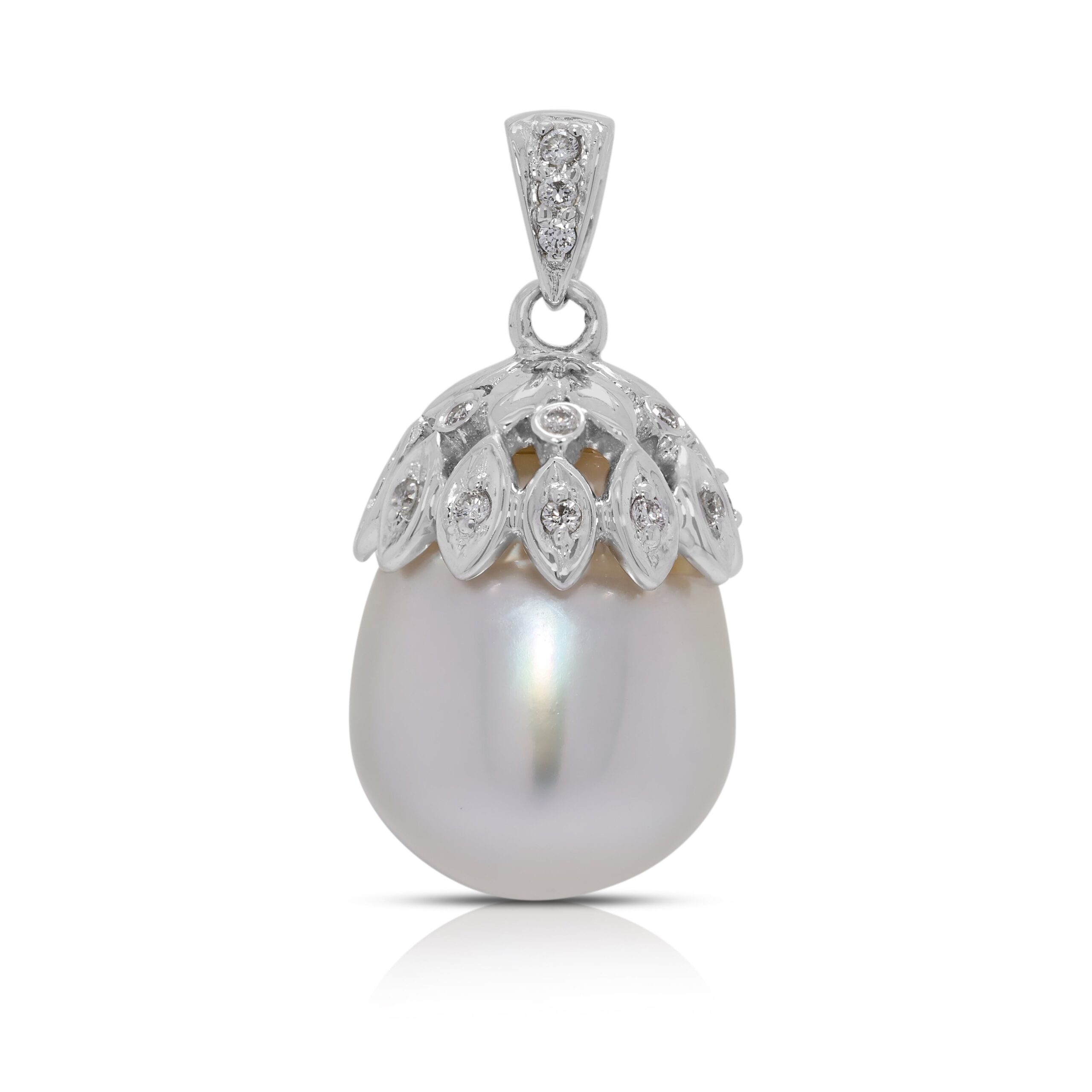 תליון אלגנטי עם פנינת ים הדרום 12.1 מ"מ ויהלום טבעי 0.04 קראט בזהב לבן 18 קראט
