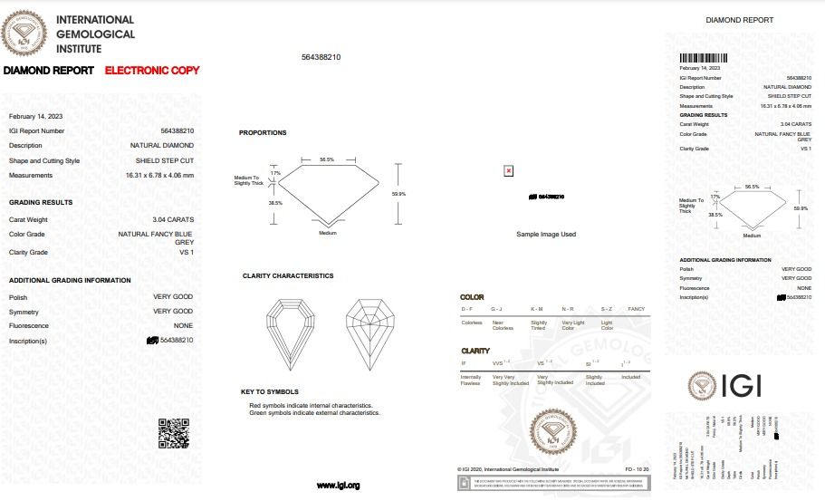 פריט תכשיט מרהיב ונדיר (!!!) זה – שרשרת זהב לבן 18K עוצרת נשימה הכוללת יהלום כחול מרהיב בצורת עפיפון במשקל 3.27ct כמרכזה. יהלום יפהפה זה מתהדר בדרגת צבע כחול שובה לב וניקיון VS1 מרשים, מה שהופך אותו לאבן חן אמיתית. הברק מודגש עוד יותר על ידי 31 יהלומי פנסי ורודים עגולים בחיתוך בריליאנט במשקל כולל של 0.37ct, המוסיפים נופך של אלגנטיות. להשלמת יצירת מופת זו, 28 יהלומי בריליאנט עגולים נוספים במשקל כולל של 1.21ct מעטרים את השרשרת, ויוצרים תצוגה מהפנטת של ניצוץ. עם משקל קראט כולל של 4.86ct ומשקל תכשיט כולל של 6.90g. יצירה מעודנת זו היא שילוב מושלם של יוקרה, נדירות ויופי שובה לב, מה שהופך אותה לפריט חובה לכל אספן תכשיטים אנין טעם. אל תחמיצו הזדמנות זו להחזיק ביצירה של אומנות וברק יוצאי דופן.
