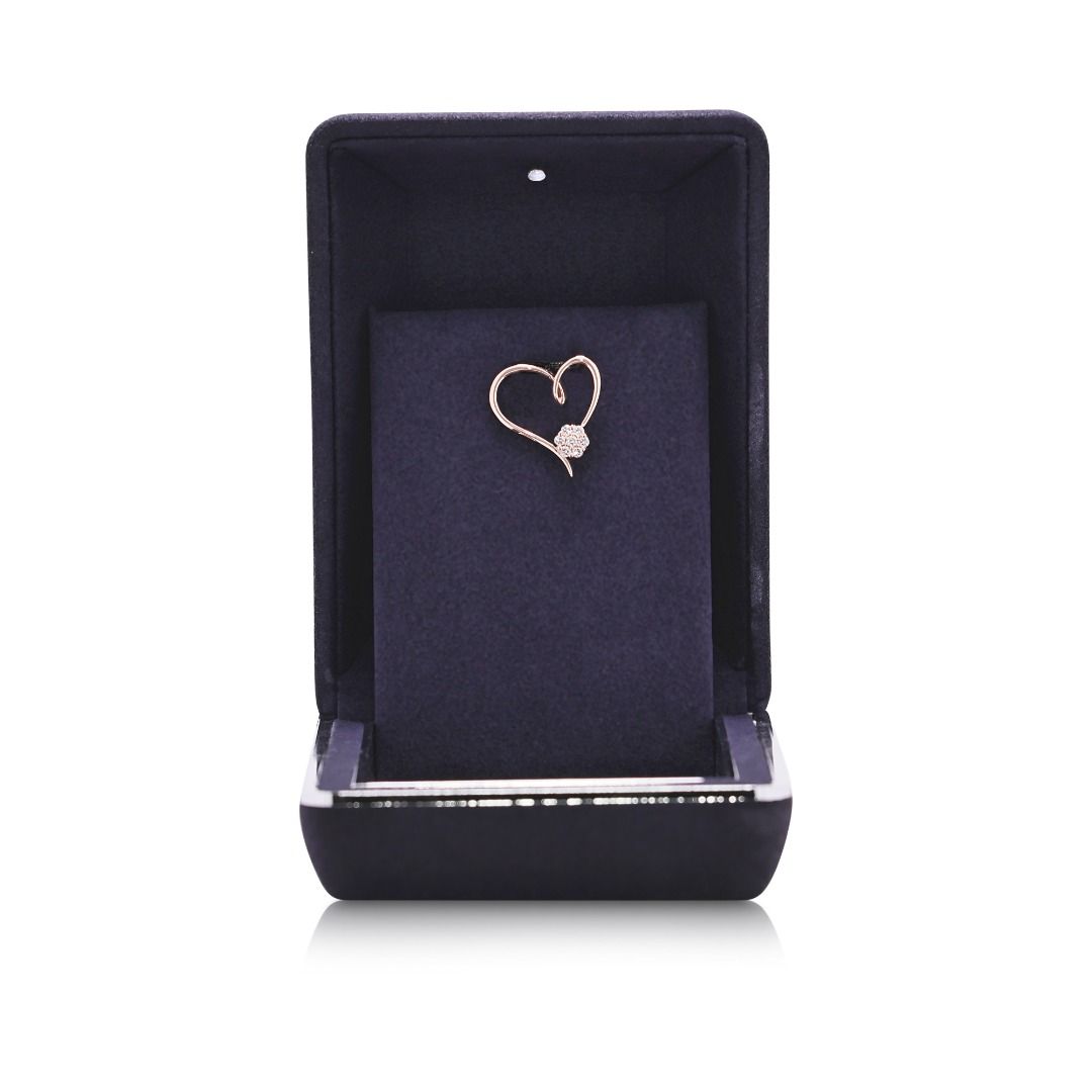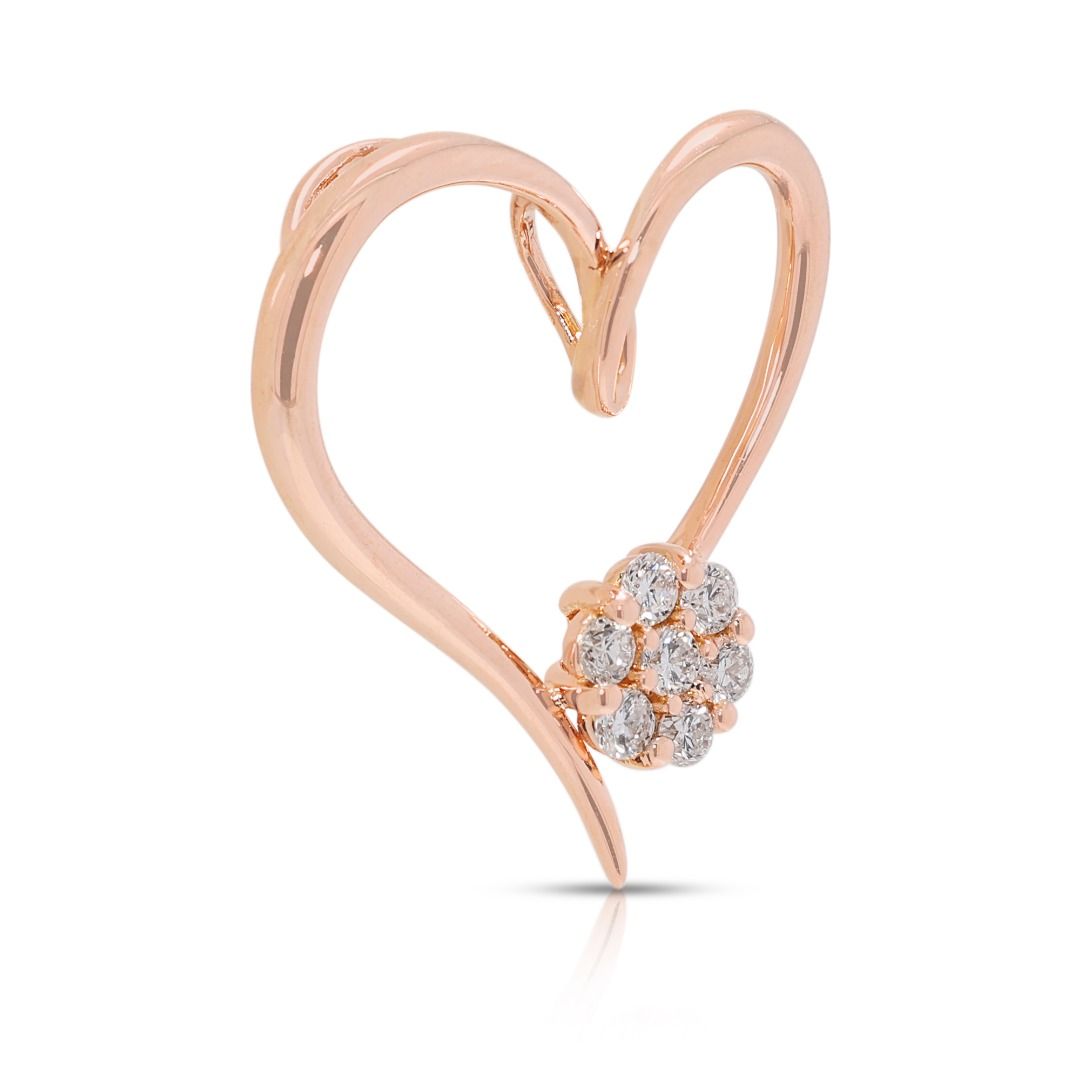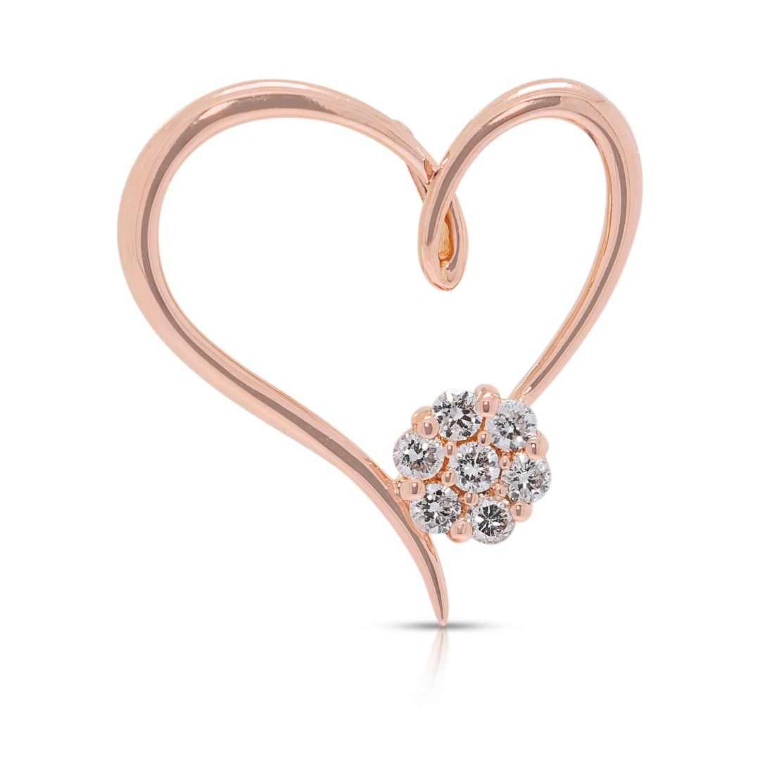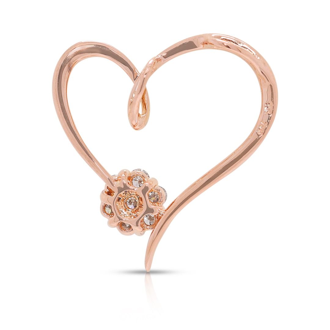 תליון לב פרחוני רומנטי משובץ יהלומים במשקל 0.17 קרט בזהב ורוד 18 קראט