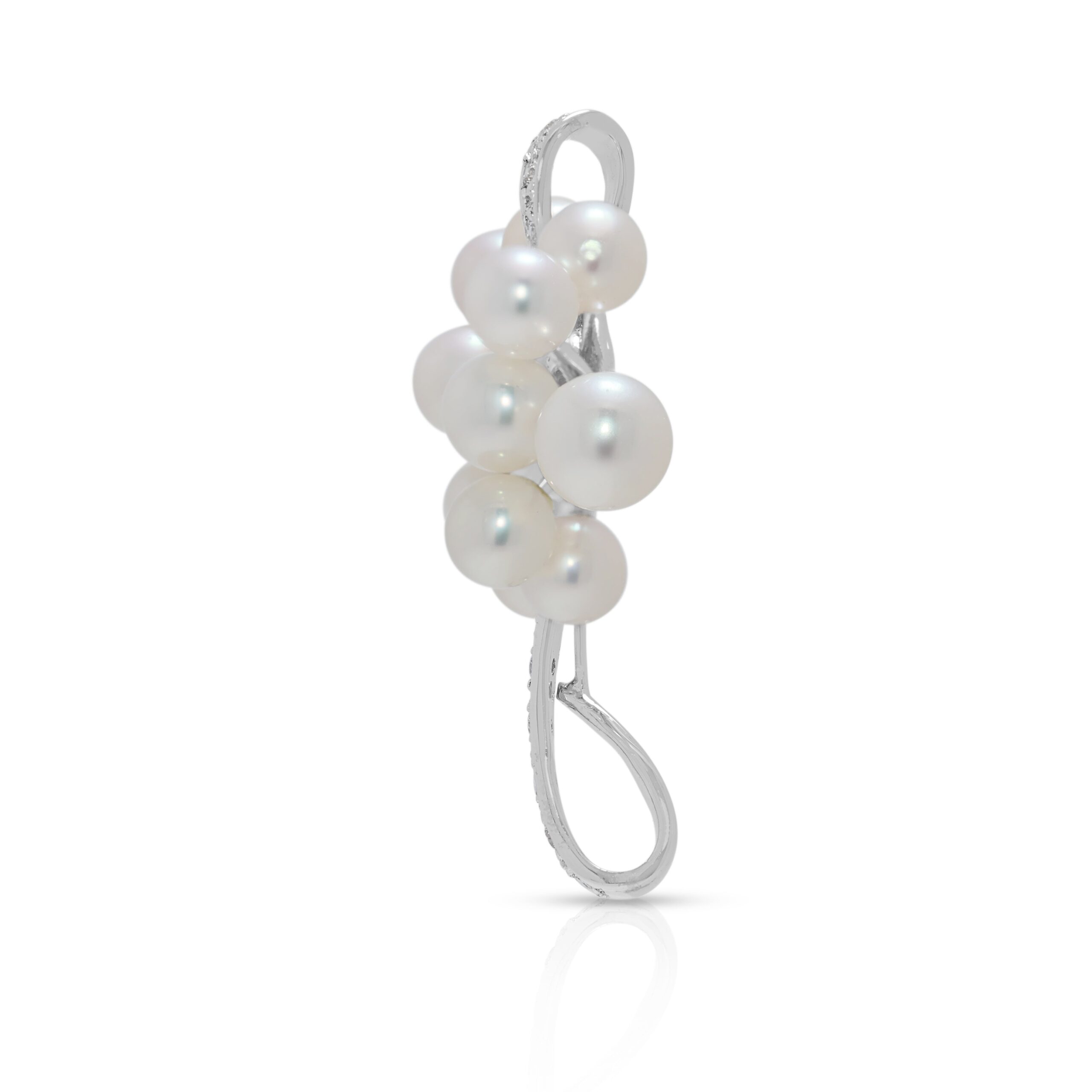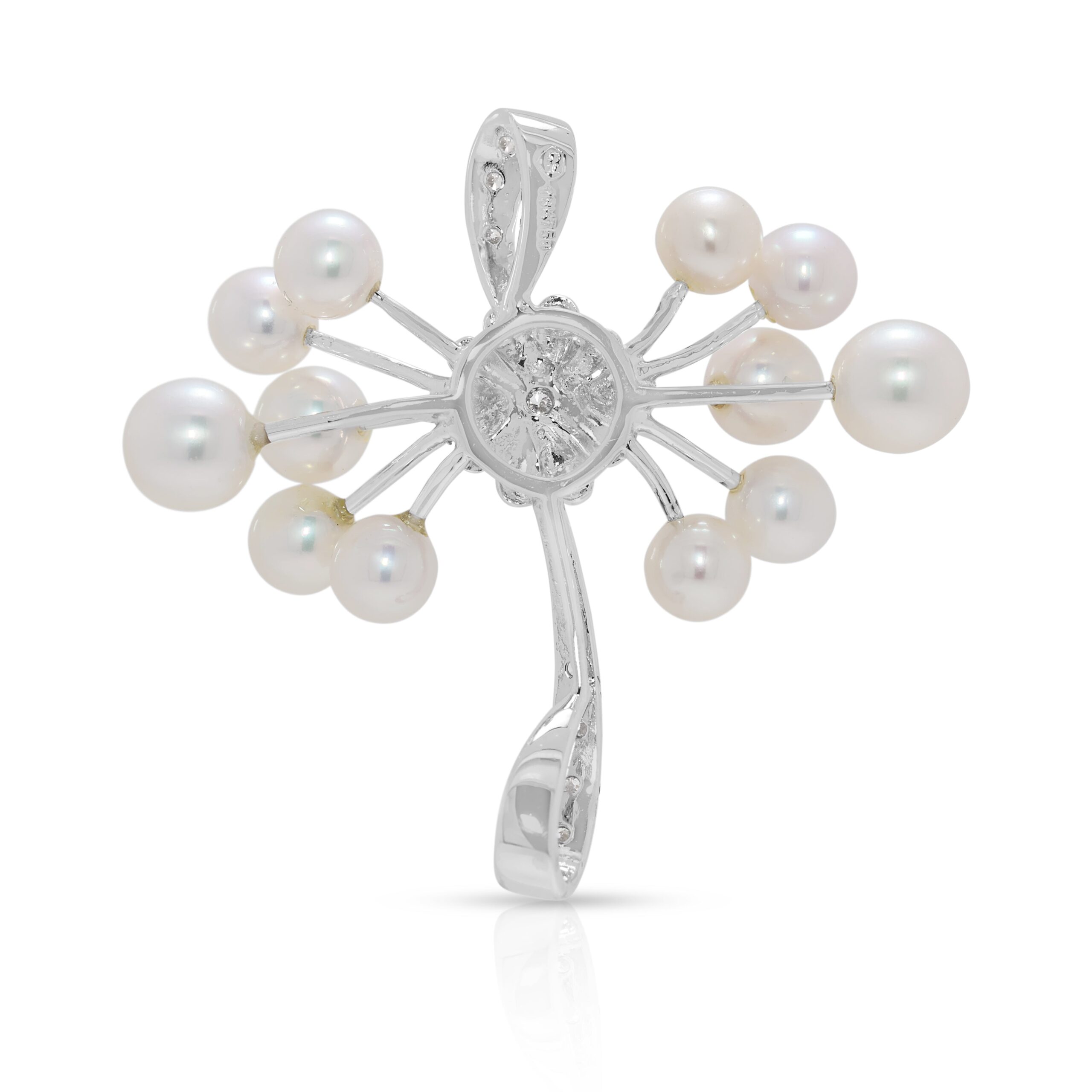 תליון קליל מיהלום טבעי 0.09ct ופנינת אקויה בזהב לבן 18K (חדש)