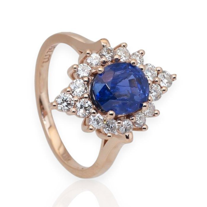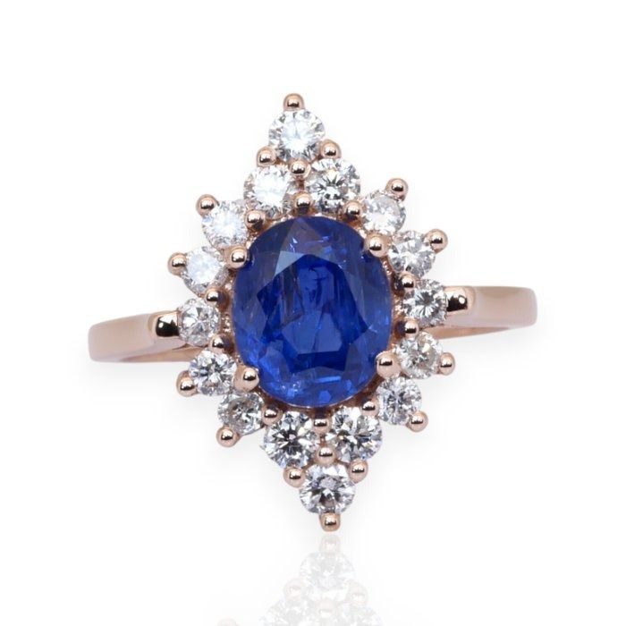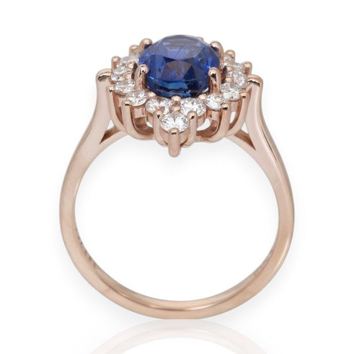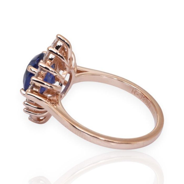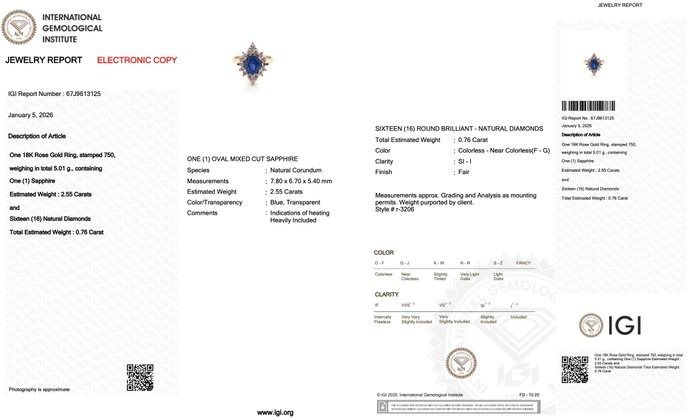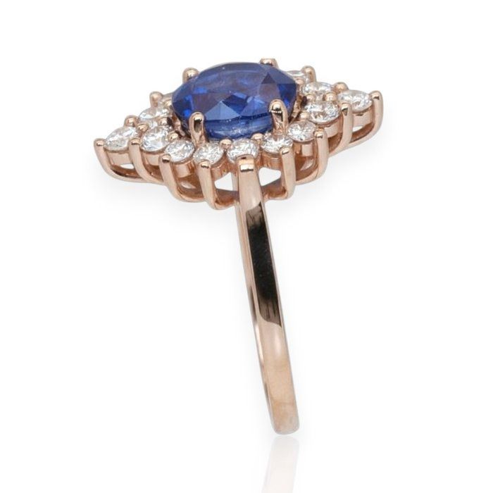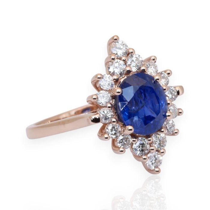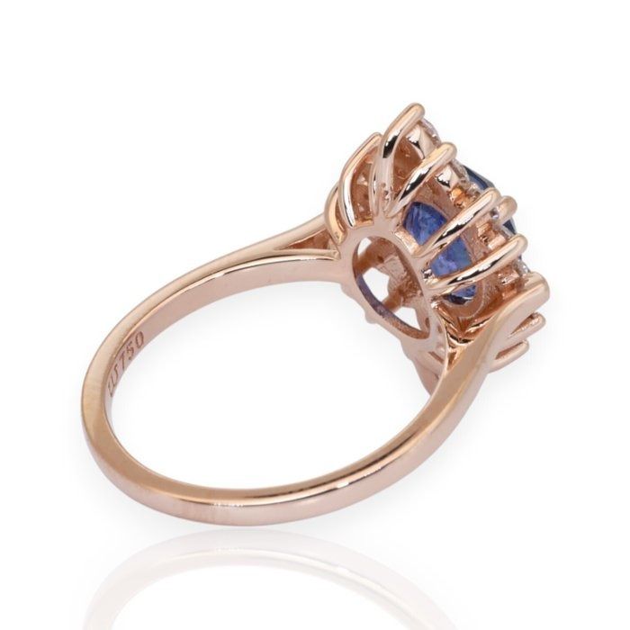 IGI טבעת אשכול ספיר ויהלומים 3.31ct בזהב ורוד 18k